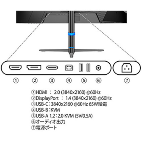 ●保証期間/2年●サイズ/31.5型●液晶パネル方式/IPS●表示色/10.7億色sRGB100%DCI-P396%AdobeRGB89%●ピッチ/約0.182mm●解像度/3840×2160●輝度/450cd/m2●コントラスト比/1300:1●視野角/H:178°V:178°●入力信号/デジタル●入力端子/HDMI×1、DP×1、USB-C×1●ケーブル/電源ケーブル(1.5m)、USB-Cケーブル(1m)、USB-AtoUSB-Bケーブル(1.5m)、HDMIケーブル(1.5m)●スピーカー/あり「2W×2」●本体サイズ(H×W×D)/高横482-610/縦734-752mm×幅横715/縦426mm×奥行205mm スタンド幅431mm●本体重量/5.7kg●本体カラー/ブラック●電源/AC100-240V50/60Hz●最大消費電力/130W【ご注意事項】※こちらの商品は返品不可商品となります。※商品仕様につきましては、メーカーHPにてご確認ください。※仕入先直送品のため、在庫状況により上記お届け目安にてお届けできない場合がございます。※詳細納期をご確認されたい場合は、0120-812-069までご連絡ください。(お問い合わせ受付時間)月曜日~金曜日9時から18時30分(祝日を除く)