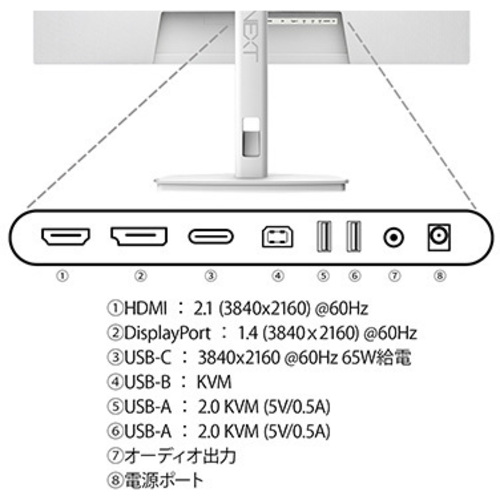 ●保証期間/2年●サイズ/23.8型●液晶パネル方式/IPS●表示色/10.7億色sRGB100%DCI-P399%AdobeRGB92%●ピッチ/約0.137mm●解像度/3840×2160●輝度/300cd/m2●コントラスト比/1000:1●視野角/H:178°V:178°●入力信号/デジタル●入力端子/HDMI×1、DP×1、USB-C×1●ケーブル/電源ケーブル(1m)、USB-Cケーブル(1m)、USB-AtoUSB-Bケーブル(1.5m)、HDMIケーブル(1m)●スピーカー/なし●本体サイズ(H×W×D)/高横383-500/縦560-620mm×幅横541/縦321mm×奥行190mm スタンド幅268mm●本体重量/4.1kg●本体カラー/ホワイト●電源/AC100-240V50/60HzToDC24V/5A●最大消費電力/95W【ご注意事項】※こちらの商品は返品不可商品となります。※商品仕様につきましては、メーカーHPにてご確認ください。※仕入先直送品のため、在庫状況により上記お届け目安にてお届けできない場合がございます。※詳細納期をご確認されたい場合は、0120-812-069までご連絡ください。(お問い合わせ受付時間)月曜日~金曜日9時から18時30分(祝日を除く)