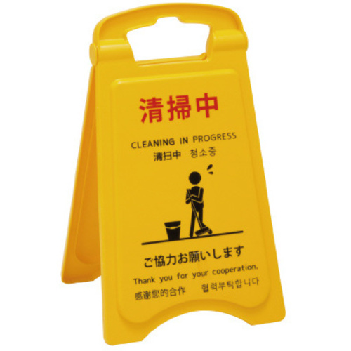 清掃の案内を促すパネル。折りたたみ式で軽量なので持ち運びに便利です。●寸法/約W253×D260×H420mm (折りたたみ時厚さ:約4cm)●質量/560g●材質/ポリプロピレン●仕様/折りたたみ式●単位/1台 【返品に関するご注意】※この商品はお取り寄せ品のため、お客様のご都合による返品はお受けできません。