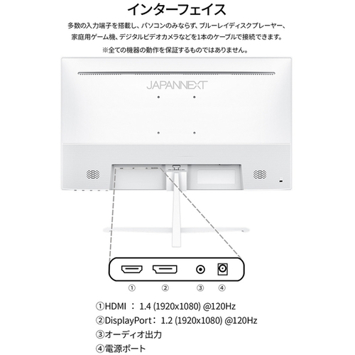 ●保証期間/2年●サイズ/21.5型●液晶パネル方式/IPS●表示色/1677万色sRGB96%DCI-P380%AdobeRGB75%●ピッチ/約0.249mm●解像度/1920×1080●輝度/300cd/m2●コントラスト比/1000:1●視野角/H:178° V:178°●入力信号/デジタル●入力端子/HDMI×1、DP×1●ケーブル/HDMIケーブル(1.5m)●スピーカー/あり「2W×2」●本体サイズ(H×W×D)/高385mm×幅496mm×奥行175mm スタンド幅335mm●本体重量/2.2kg●本体カラー/ホワイト●電源/AC100-240V50/60HzToDC12V/2A●最大消費電力/24W【ご注意事項】※こちらの商品は返品不可商品となります。※商品仕様につきましては、メーカーHPにてご確認ください。※仕入先直送品のため、在庫状況により上記お届け目安にてお届けできない場合がございます。※詳細納期をご確認されたい場合は、0120-812-069までご連絡ください。(お問い合わせ受付時間)月曜日~金曜日9時から18時30分(祝日を除く)
