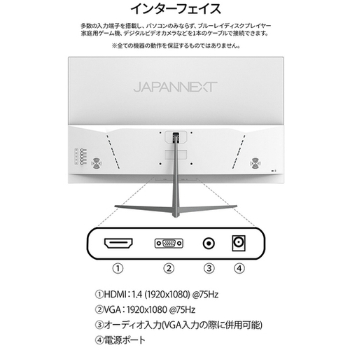 ●保証期間/2年●サイズ/32型●液晶パネル方式/VA●表示色/1677万色sRGB100%DCI-P382%AdobeRGB77%●ピッチ/約0.363mm●解像度/1920×1080●輝度/250cd/m2●コントラスト比/4000:1●視野角/H:178° V:178°●入力信号/デジタル、アナログ●入力端子/HDMI×1、VGA×1●ケーブル/HDMIケーブル(1.5m)●スピーカー/あり「2W×2」●本体サイズ(H×W×D)/高507mm×幅715mm×奥行188mm スタンド幅423mm●本体重量/4.8kg●本体カラー/ホワイト●電源/AC100-240V50/60HzToDC12V/4A●最大消費電力/40W【ご注意事項】※こちらの商品は返品不可商品となります。※商品仕様につきましては、メーカーHPにてご確認ください。※仕入先直送品のため、在庫状況により上記お届け目安にてお届けできない場合がございます。※詳細納期をご確認されたい場合は、0120-812-069までご連絡ください。(お問い合わせ受付時間)月曜日~金曜日9時から18時30分(祝日を除く)