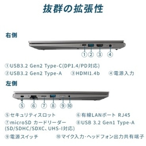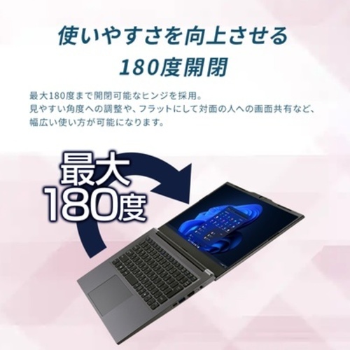 ●保証期間/1年●インストールOS詳細/Windows11Pro●ライセンスOS/Windows11●CPU詳細/インテルCore5120U(最大5.0GHz/10コア/12スレッド)●プロセッサーテクノロジー/120U●メインメモリ(標準)/16GB●メインメモリ(最大)/64GB●メモリタイプ/DDR5SO-DIMM●メモリスロット(空/全)/0/2●ストレージ容量/500GB●ストレージタイプ/SSD500GBNVMeSSD●光学ドライブ/なし●ディスプレイサイズ/14型●解像度/1920×1080ドット●ポインティングデバイス/あり 本体内蔵タッチパッド(マウスは付属しません)●Webカメラ/あり プライバシーシャッター・マイク付HD画質(720p)WEBカメラ●オフィスソフト/なし●WWAN/なし●本体サイズ(H×W×D)/22x325x222mm●本体重量/約1300g●附属品/ACアダプタ、簡易マニュアル(各部の名称・保証書・修理依頼書)【ご注意事項】※こちらの商品は返品不可商品となります。※商品仕様につきましては、メーカーHPにてご確認ください。※仕入先直送品のため、在庫状況により上記お届け目安にてお届けできない場合がございます。※詳細納期をご確認されたい場合は、0120-812-069までご連絡ください。(お問い合わせ受付時間)月曜日~金曜日9時から18時30分(祝日を除く)