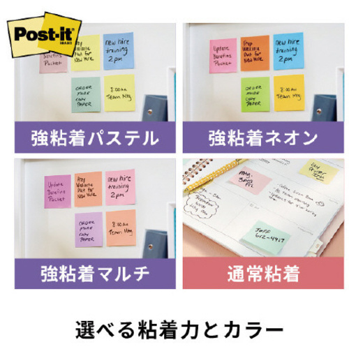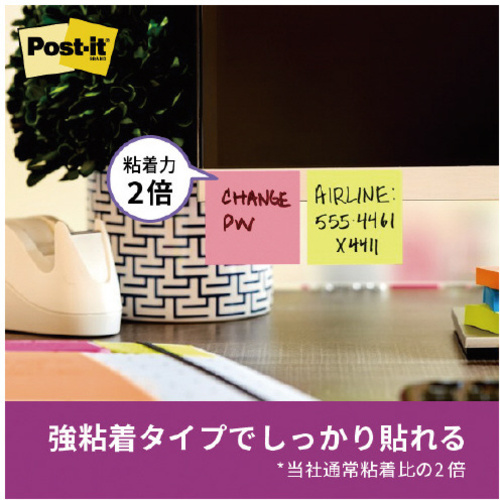 つきにくかった樹脂面にもしっかり貼れて、きれいにはがせる強粘着タイプのポストイット。ちょっと詳しい伝言、情報整理などに便利な、定番の正方形サイズ。エコノパックよりもさらにたっぷり入ったパワーパック。見落とし防止に役立つネオンカラー。●寸法/75×75mm●カラー/オレンジ・エレクトリックブルー・ライム・ウルトライエロー・ローズ各4冊●1冊/90枚●単位(入数)/1箱(20冊入)【ご注意事項】※商品デザイン、パッケージ、仕様が予告なく変更される場合があります。【デジタルカタログ】※こちらの商品のデジタルカタログページは、画像下のリンクからご覧いただけます。