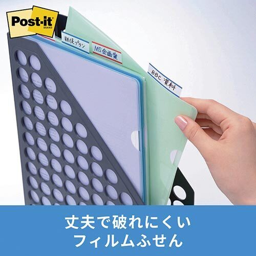 インデックス用の記入スペースを設けた、じょうぶで破れにくいフィルム素材のポストイット。シンプルな白地の幅広サイズなので、文字が書込みやすい。1枚ずつ連続して取り出せるポップアップ式。●寸法/44×50mm●粘着部分/50mm側●カラー/白地に青帯●枚数(1冊あたり)/50枚●単位(入数)/1パック(1冊入)【ご注意事項】※商品デザイン、パッケージ、仕様が予告なく変更される場合があります。【デジタルカタログ】※こちらの商品のデジタルカタログページは、画像下のリンクからご覧いただけます。