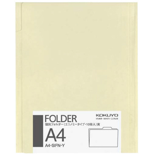 コクヨの定番!コクヨ「インターグレイ」シリーズの個別フォルダーはこちら。カラーエコノミータイプです。●材質/紙(古紙配合)●カラー/黄●寸法/311・240(+15)薄型●単位(入数)/1パック(10枚入)【ご注意事項】※1パック単位でお申し込みください。