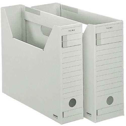 コクヨインターグレイシリーズのファイルボックス。特殊コーティングで汚れにくいタイプです。●材質/色厚板紙(古紙配合)●ワンタッチ底●A4●260×317×75mm●グレー●単位/1個
