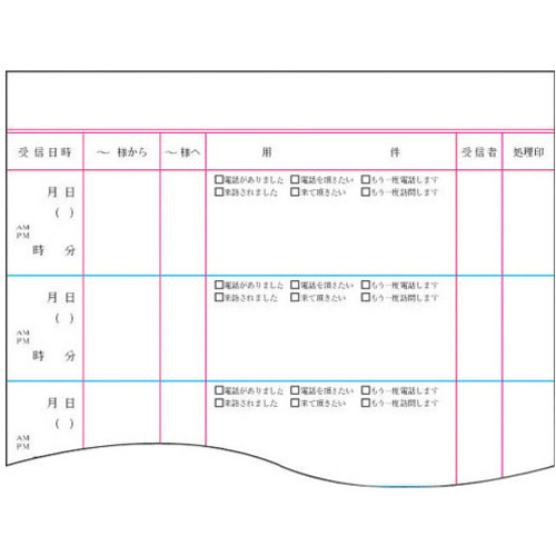 電話対応の記録に便利!上質紙で筆記しやすい!●寸法/タテ252×ヨコ179mm(セミB5)●材質/上質紙(古紙配合)●表紙/板紙●枚数/40枚●製本様式/無線とじ●単位/1冊
