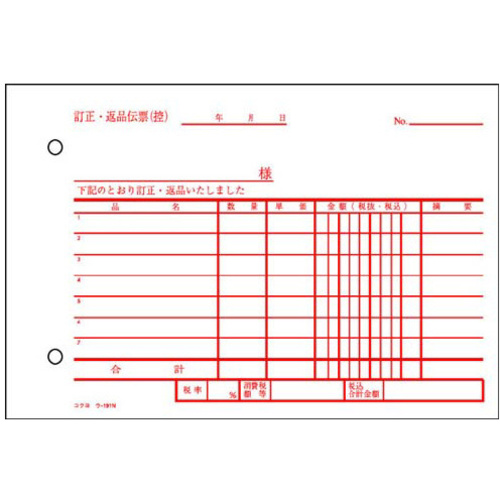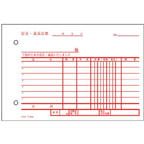 紙の裏面に複写用のカーボンが添布してあるバックカーボンタイプになります。●寸法/タテ128×ヨコ188mm(B6)●行数/7行●組数/50組●単位/1冊
