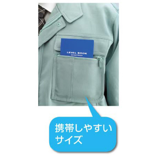 オール樹脂ベースで水や汚れに強く、現場で目立つカラー表紙。作業服のポケットにもぴったり納まります。表紙が硬く、もったままでの筆記に便利。測量データの記入に適した罫内容です。●仕様/レベル・合成紙(耐水)●カラー/青●寸法/タテ166×ヨコ94×背幅7mm●中紙寸法/タテ160×ヨコ91mm ●枚数/30枚●材質/表紙:再生PP60%、中紙:合成紙●製本様式/溶着●単位/1冊